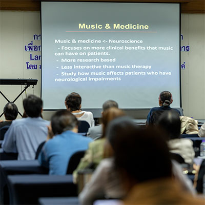 เป็นการดำเนินการภายใต้ธีม Performing Music and Media และ Wellness ที่เป็น 2 ธีม ภายใต้ 7 ธีมหลัก ที่มุ่งส่งเสริมด้านการทำเสียงดนตรีล้านนาสร้างสรรค์ และดนตรีเพื่อการผ่อนคลายต่อสุขภาพจิตให้มีชีวิตชีวาหรือคลายความเครียด โดยมีผลการศึกษาและการทดลองด้านดนตรีบำบัด ของภาควิชาเวชศาสตร์ฟื้นฟู คณะแพทยศาสตร์ มหาวิทยาลัยเชียงใหม่ มาเป็นแนวทางและการประยุกต์ใช้ร่วมกับศิลปะดนตรีล้านา รวมไปถึงการใช้เสียงดนตรีสู่การทำสมาธิและบริหารร่างกาย (เจิง โยคะ สมาธิ) ให้เกิดการเคลื่อนไหวไปพร้อมกับเสียงบรรเลงประกอบ ร่วมกับการพัฒนาพื้นที่ทางกายภาพเป็นพื้นที่กิจกรรมอย่างมีส่วนร่วม เสมือนห้องเรียนไร้กรอบที่ให้ทั้งความรู้ และการจัดแสดงผลงานดนตรีล้านนาร่วมสมัยแนวใหม่(Lanna Music relaxation) พร้อมทั้งการสร้างสื่อออนไลน์เผยแพร่ในหลากหลายช่องทาง...